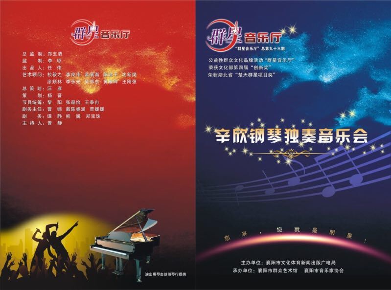 4月23日晚,辛欣鋼琴獨(dú)奏音樂會在襄陽成功舉行,這也是“群星音樂廳”活動的第93期。該活動由襄陽市文化體育新聞出版廣電局主辦,襄陽市群眾藝術(shù)館、襄陽市音樂家協(xié)會承辦,襄陽市朗朗琴行協(xié)辦,海倫鋼琴是本次活動的指定用琴。