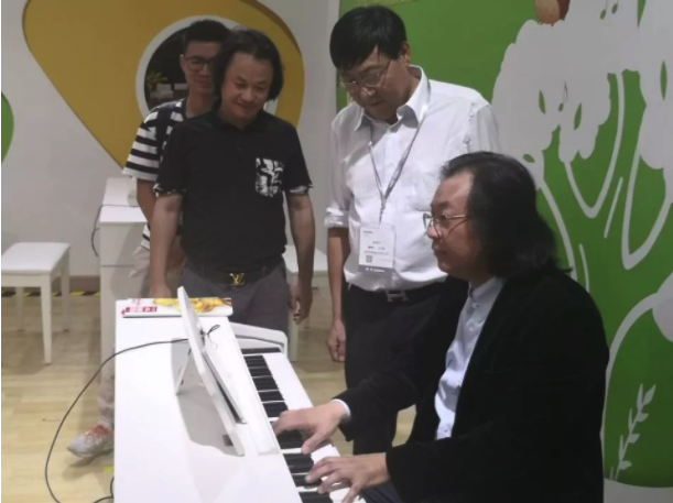 上海音樂學(xué)院的鋼琴系副主任、國際鋼琴藝術(shù)中心常務(wù)副主任周鏗專程到上海樂器展海倫鋼琴展位,受到陳海倫董事長熱情接待。周教授試奏了海倫新出廠的278專業(yè)演奏用琴,又到了電鋼琴的展位,仔細(xì)了解了有關(guān)智能電鋼琴的性能,并以兒童試奏者的身份體驗(yàn)了智能學(xué)習(xí)演奏的過程,他興奮地表示當(dāng)了一次小琴童,對(duì)電鋼琴的音色,觸感及所使用的教材都給予了很高的評(píng)價(jià)!