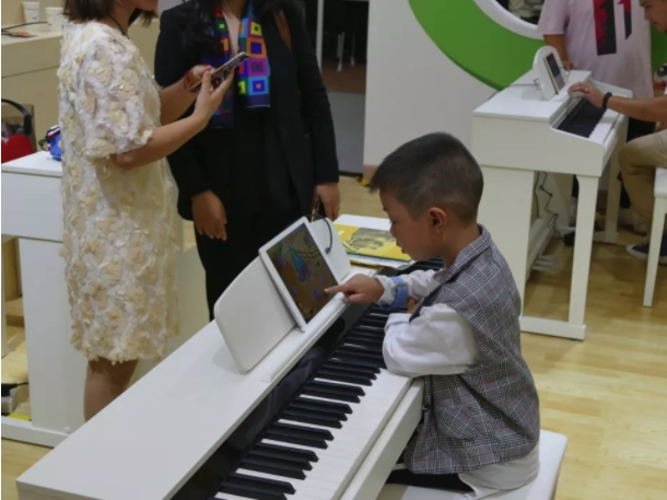 在海倫智能鋼琴教室展位上,有很多慕名前來的琴童家長朋友,他們對(duì)海倫鋼琴推出的這種新型教育理念很感興趣,并表示有意讓自家孩子嘗試這種“智能學(xué)琴”方式。