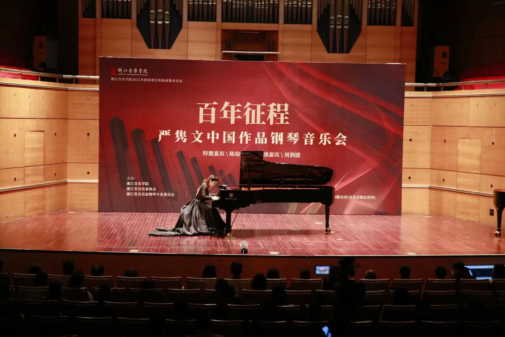 2021年11月18日晚,來自杭州的社會各界人士、高校師生相聚杭州大劇院·音樂廳,一同感受了一場別開生面的音樂思政課。這場別致的鋼琴音樂會,用海倫九尺鋼琴優美的旋律帶領聽眾們一同重溫建黨百年征程中的珍貴瞬間。
