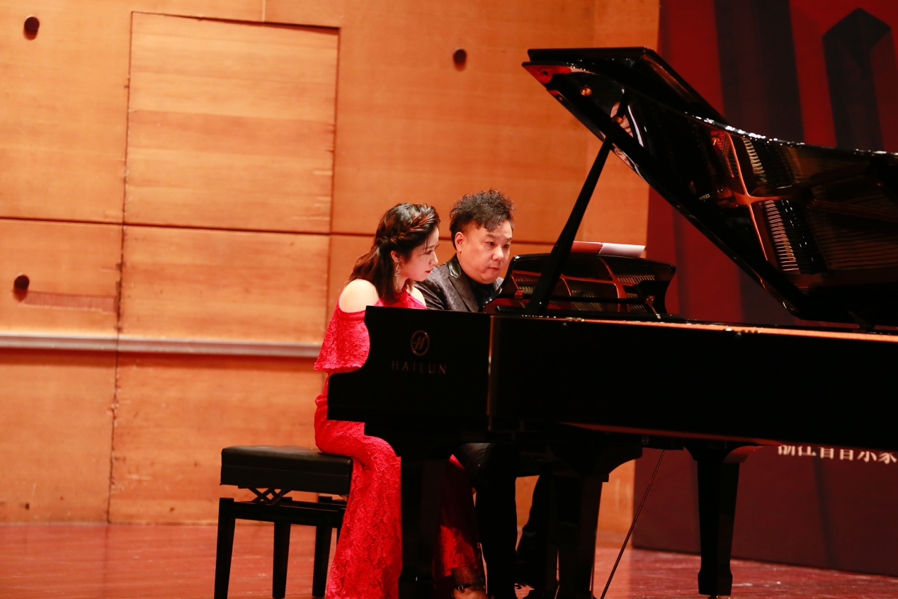四手聯彈鋼琴演奏《花兒為什么這樣紅》讓聽眾感受到了屬于鋼琴的獨特魅力,濃郁的新疆民族風格為大家展現了細膩的情感變化和戲劇性音響效果。