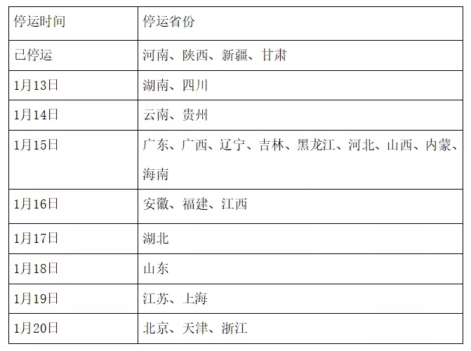 上述時(shí)間可能因局部疫情等不可抗力情況有變動(dòng)和調(diào)整。省會(huì)直達(dá)或大城市專線的停運(yùn)時(shí)間會(huì)有小幅延后,具體另行告知。