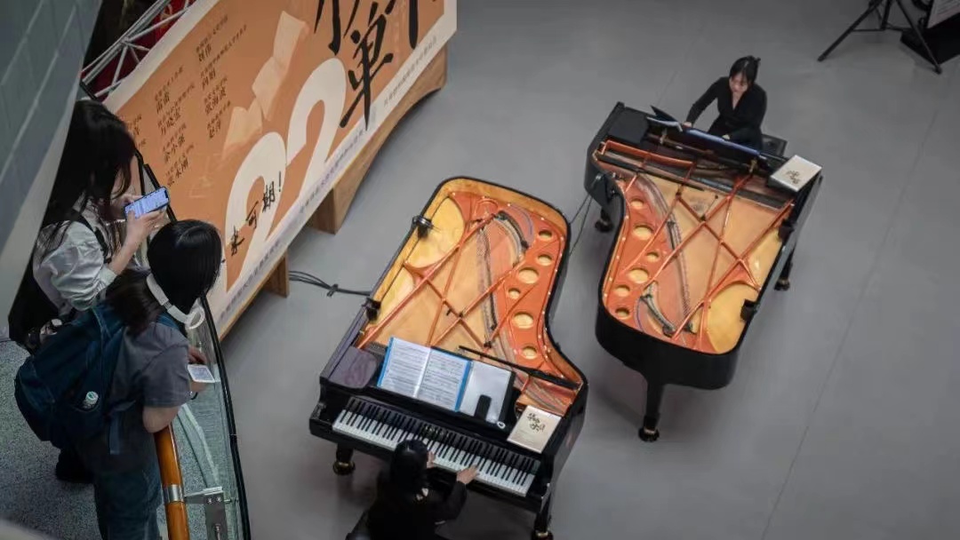 首期音樂會立足于“校長書單”所寄語大學生們的“求真、求善、求美、求思與求學”之意,選取10首經典雙鋼琴樂曲。室內樂演奏家葉思思和旅美鋼琴家蘇瑩瑩,現場演奏并分別解說了《六首卡農練習》《瀏陽河》《華麗的探戈》《三首前奏曲》《C大調鋼琴奏鳴曲》《月光》《圣達菲的少女妮娜斯》和《春之聲》等樂曲。