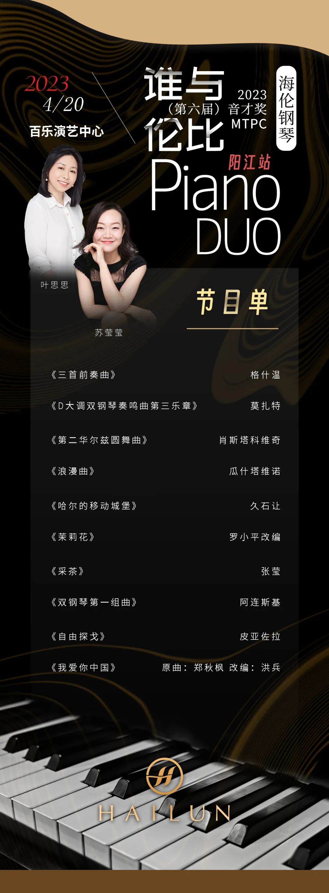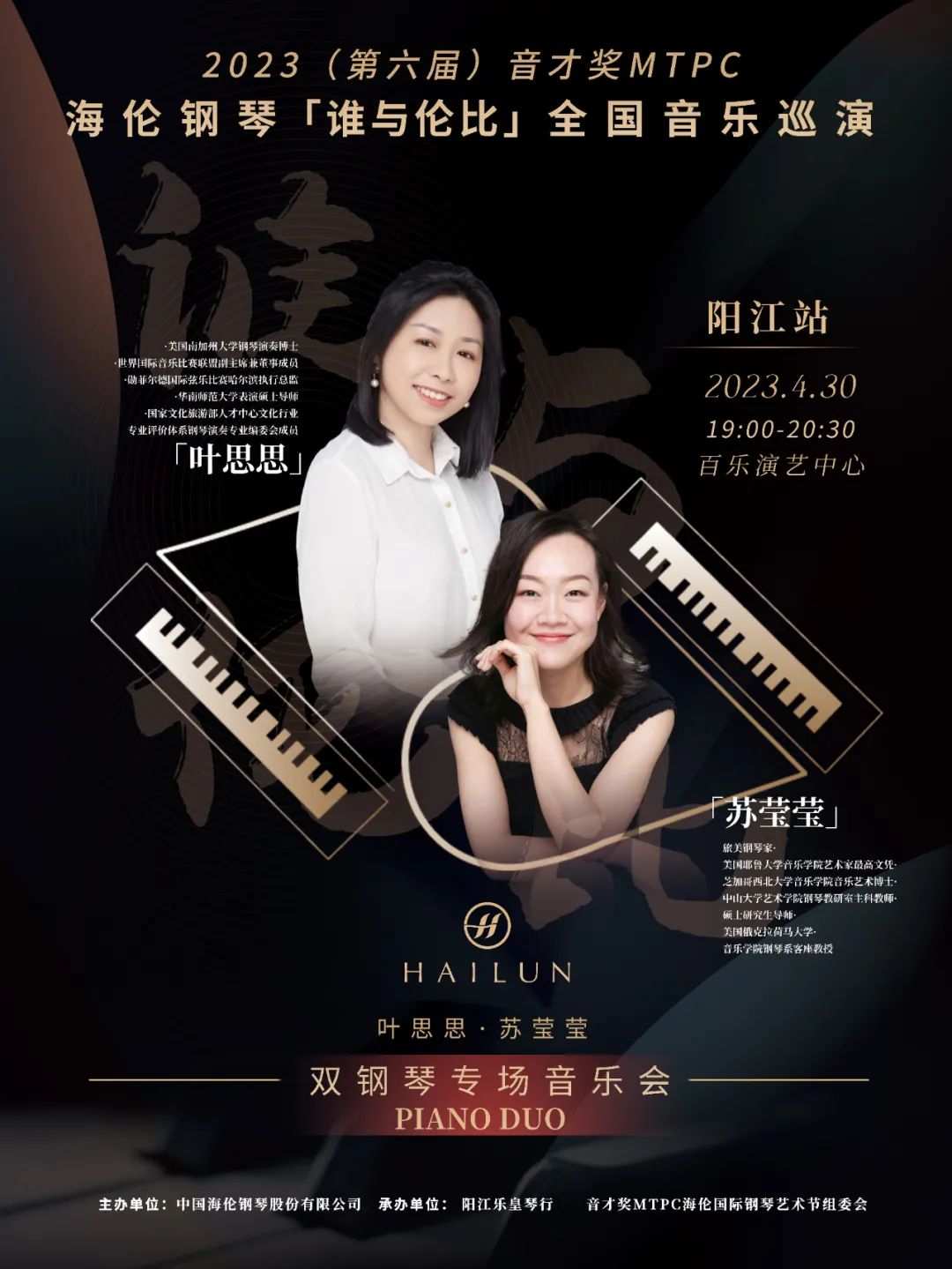 演出預告丨2023(第六屆)音才獎MTPC海倫鋼琴“誰與倫比”全國音樂巡演陽江站—葉思思·蘇瑩瑩雙鋼琴音樂會來啦