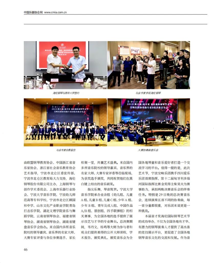 近日,“音才”賦能校企跨界融合,海倫加速布局高端市場——2023音才獎MTPC海倫國際鋼琴藝術節比賽登上了《中國樂器》2023年第9期(總第248期)大國品牌專欄。《中國樂器》雜志是由中國輕工業聯合會主管,中國樂器協會主辦的行業會刊,以權威的視角,見證著中國樂器行業的繁榮和發展過程中的每一個關鍵歷史事件。